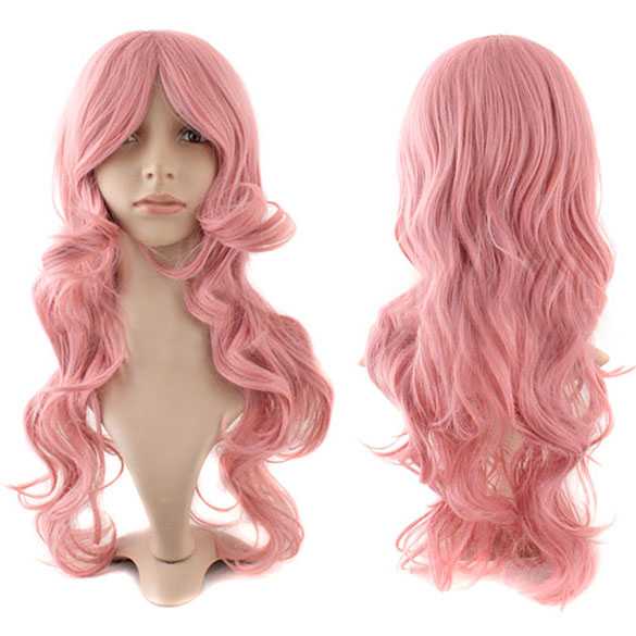 Pruik poederroze clearance, Cosplay pruik lang steil haar 100cm clearance