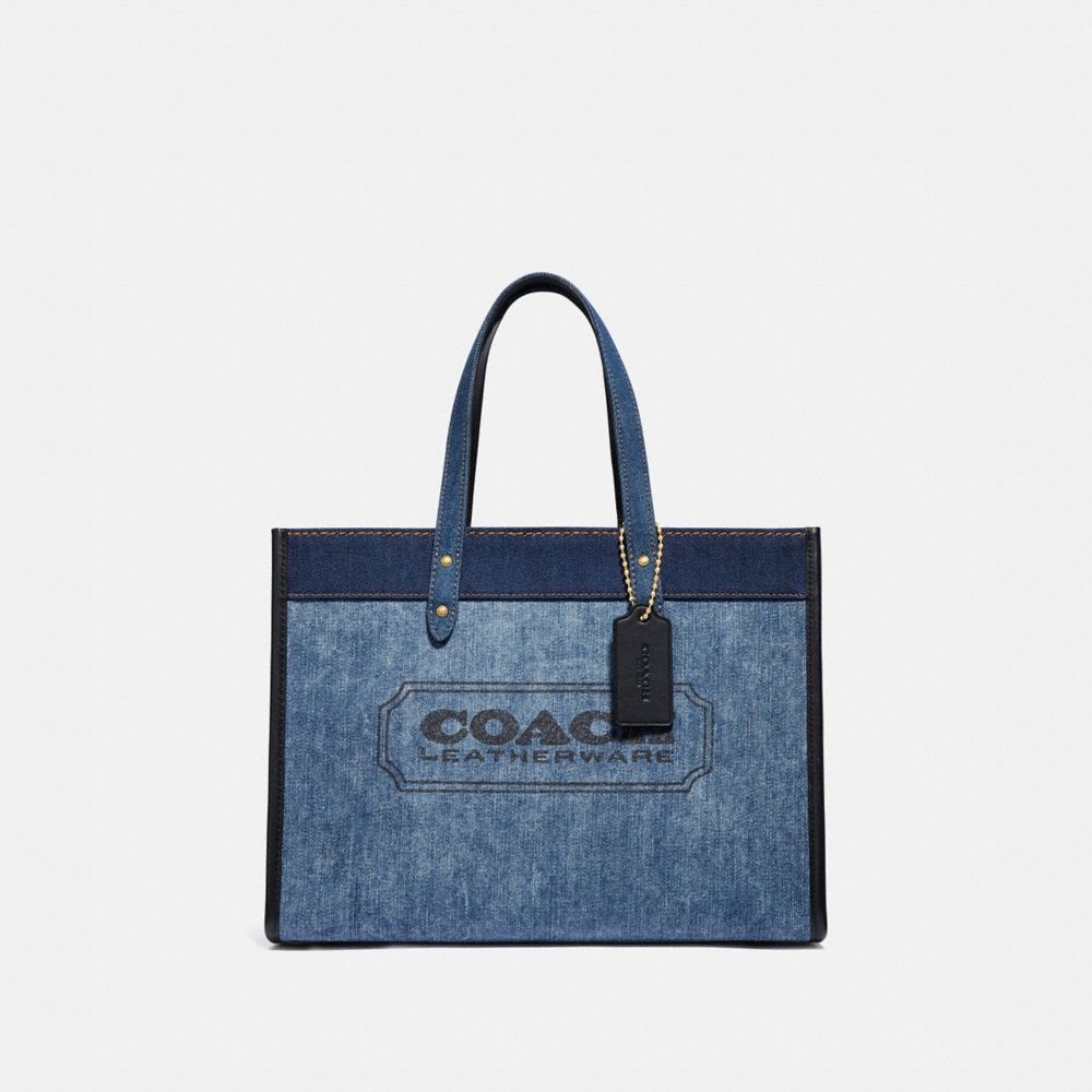 - Coach branded denim & leather field tote sale online