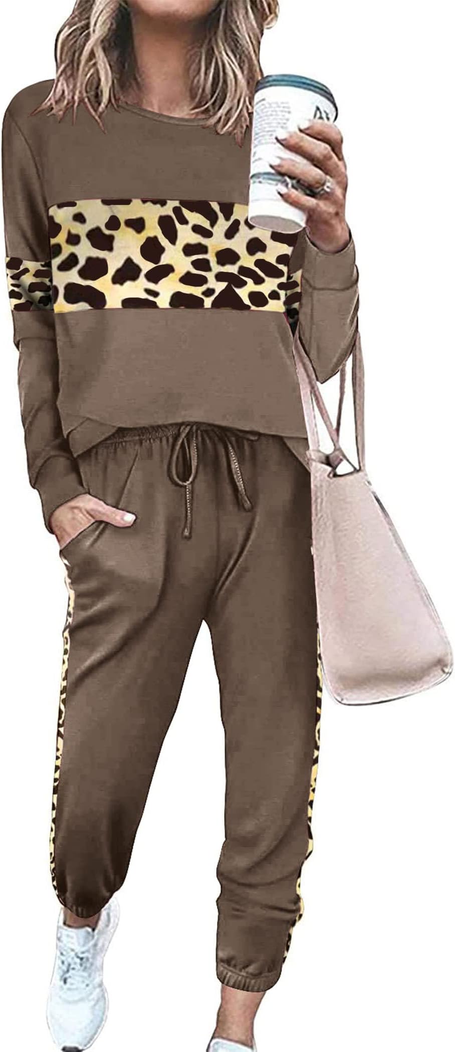 Adidas leopard print tracksuit clearance, Nimsruc Two Piece Outfits For Women Long Sleeve Bodycon Tracksuit Casual Sweatsuits Jogger Sets clearance