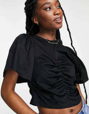Ruched front t shirt clearance, Urban Revivo Ruched Front T-Shirt in Black clearance