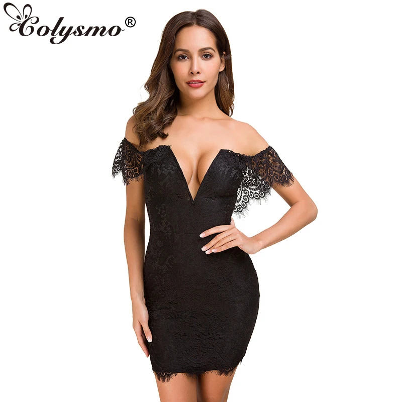 Sexy deep shoulder bodycon dress clearance, Women's Fashion Deep V Collar Lace Sexy clearance