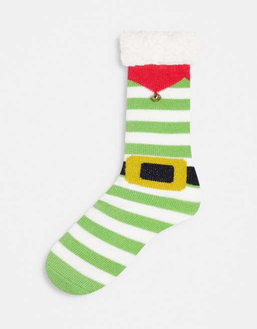 Slipper socks asos clearance, ASOS DESIGN slipper socks in green and white stripe with Christmas detail | ASOS clearance