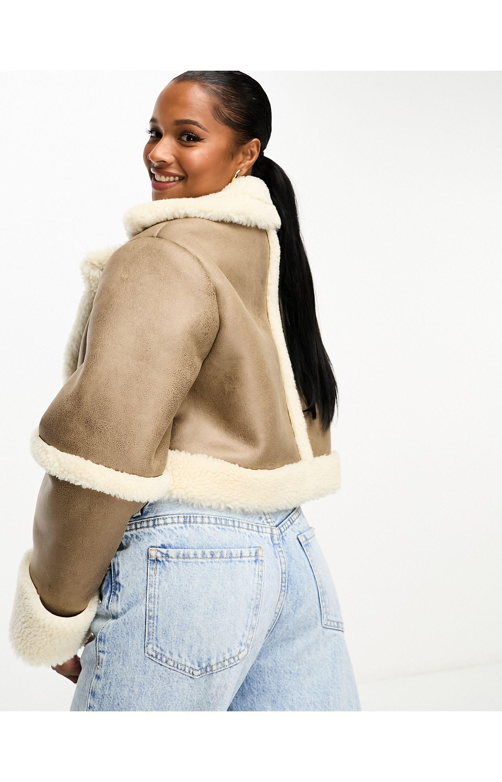 Asos womens aviator jacket clearance, ASOS Cropped Aviator Jacket in Brown | Lyst clearance
