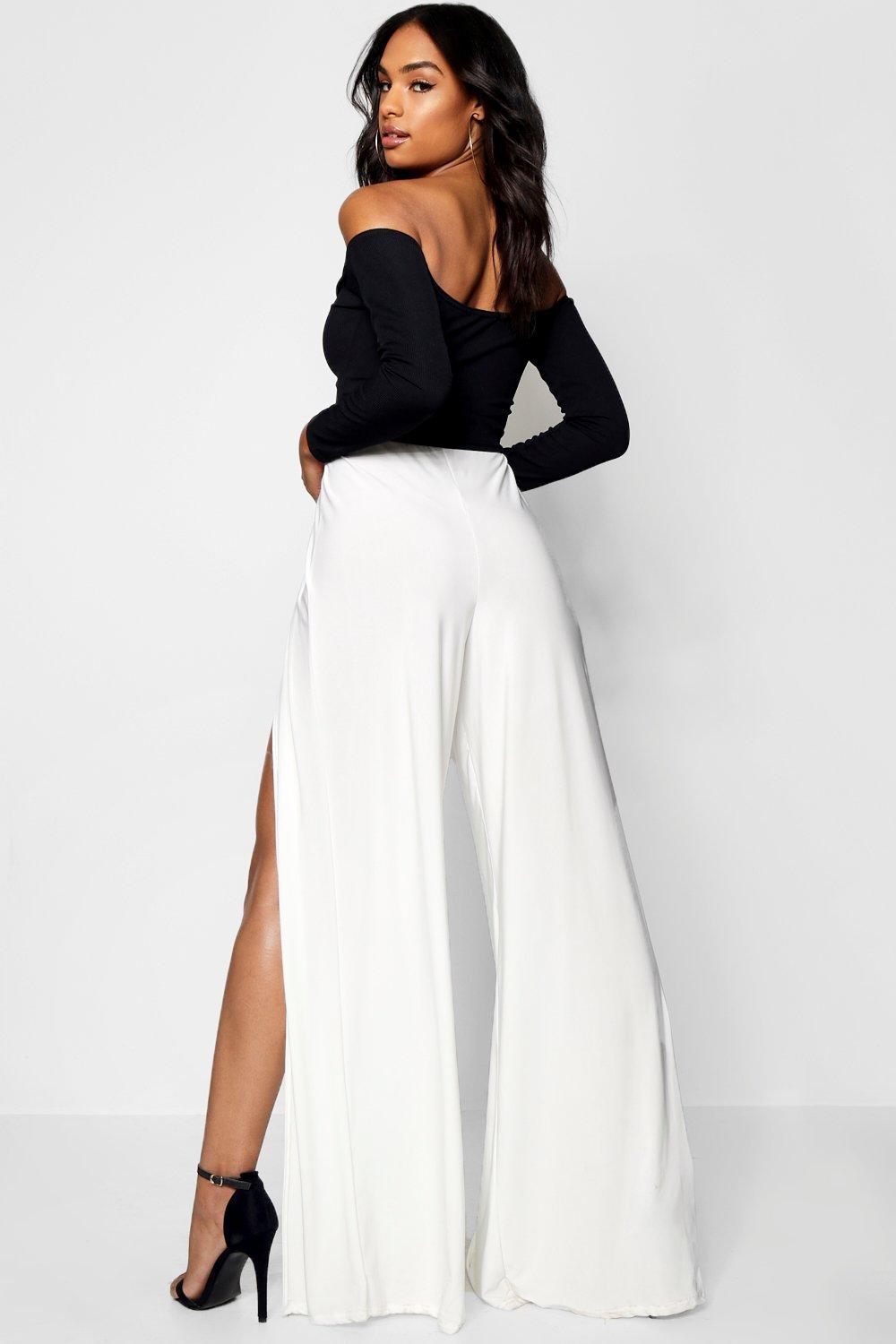 Slit leg trousers clearance, Woven Side Split Wide Leg Trousers | boohoo clearance