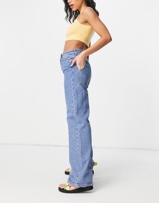 Mid blue wide leg jeans clearance