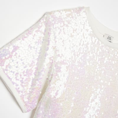 White sequin t shirt dress clearance