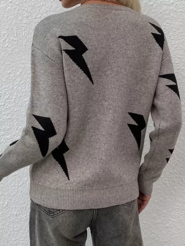 Lighting sweater clearance, Lightning Pattern Crew Neck Sweater clearance