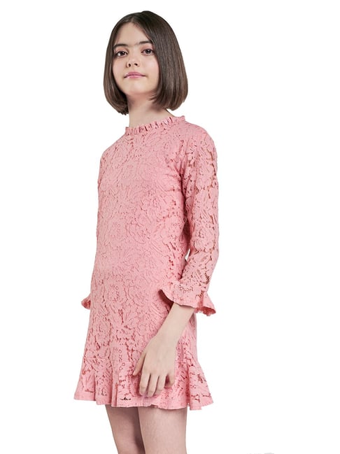 Girls pink lace dress clearance