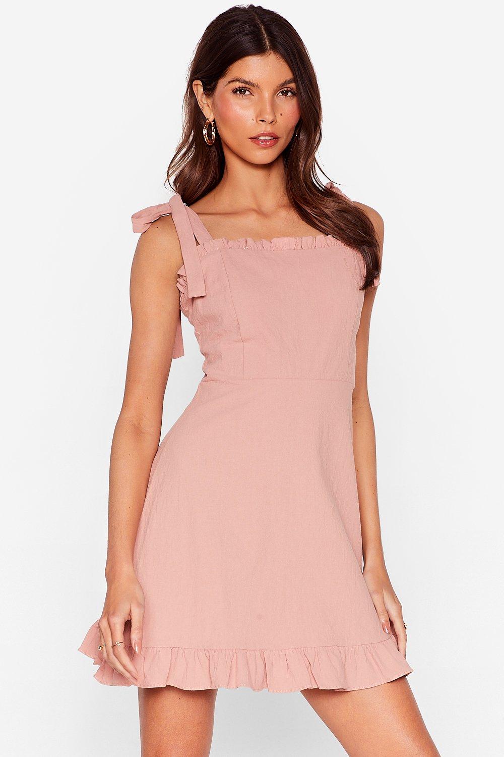 - Tie strap ruffle mini dress sale
