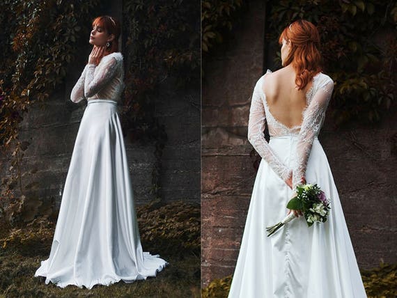 - Two piece long sleeve wedding dress shop