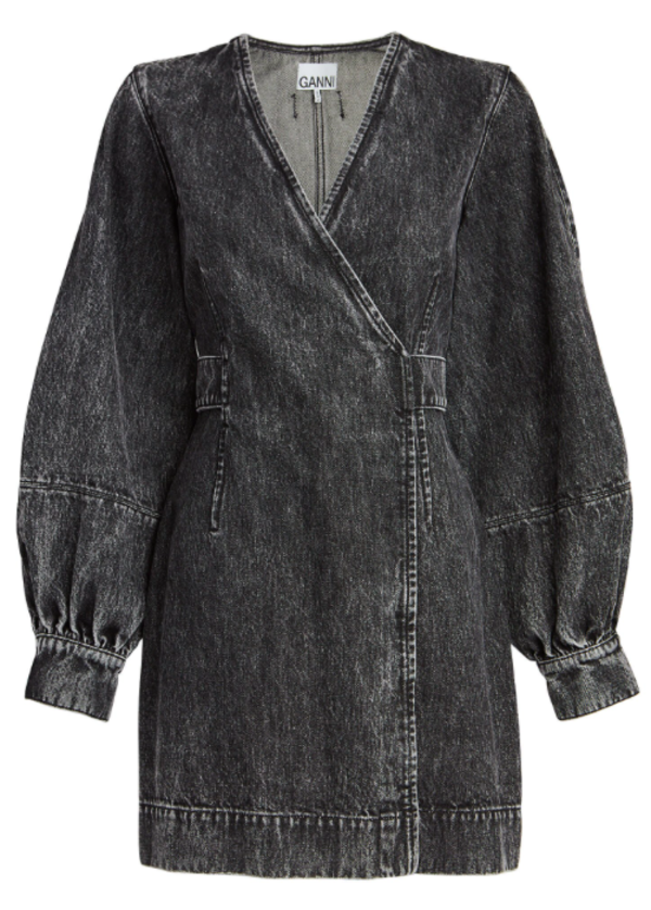 - Ganni washed denim wrap dress