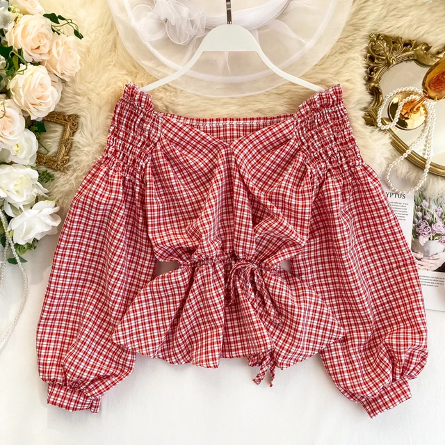 Red plaid peplum top clearance