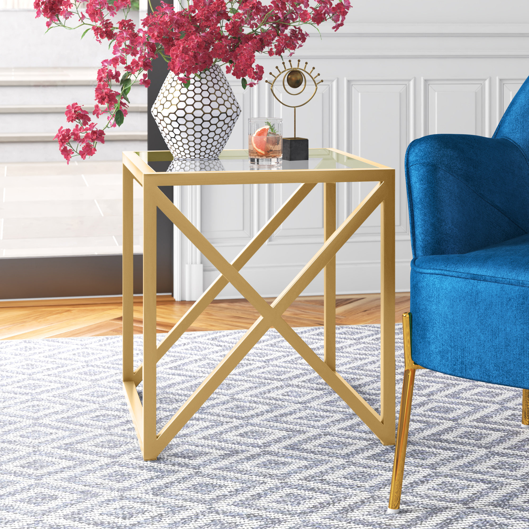 Glass gold end table clearance