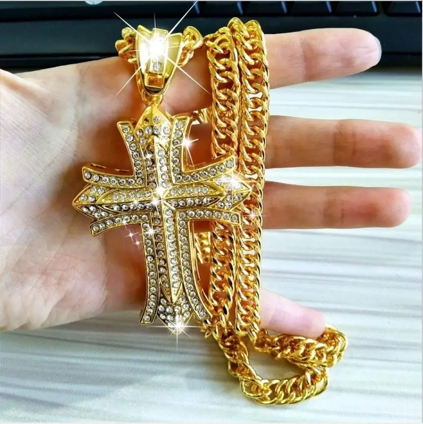 Thick gold pendant clearance, Hot Rock Dance Cross Pendant Long clearance