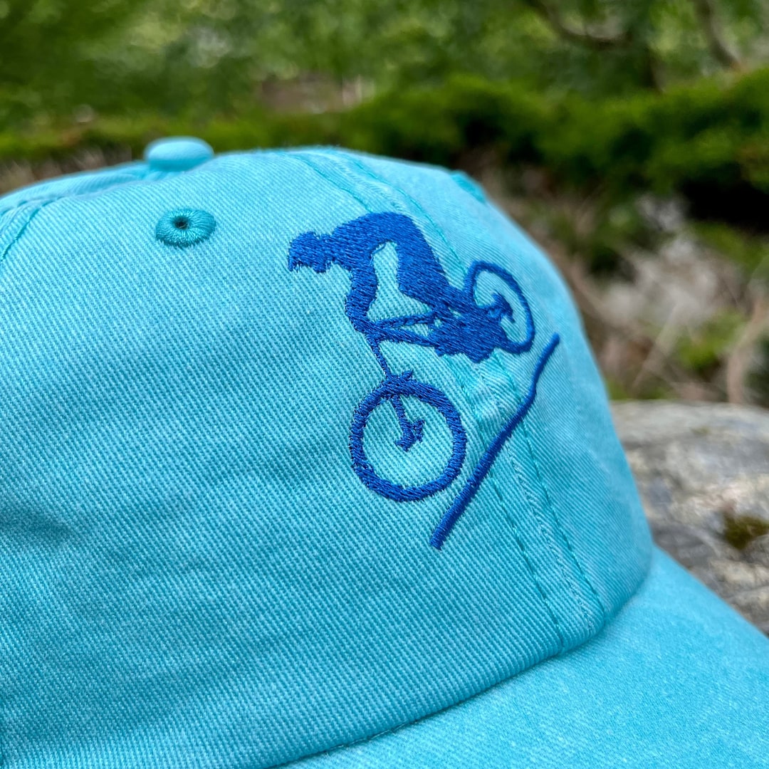 Mountain biking hats clearance, Mountain Biking Hat Embroidered, Blue Mountain Bicycle Dad Hat for Men 100% Cotton Washed clearance