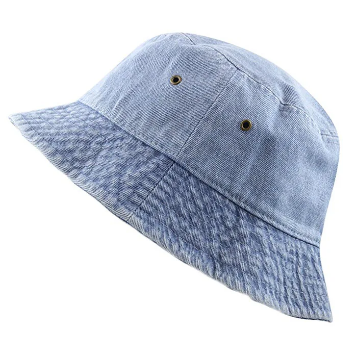 Denim blue bucket hat clearance, Quality Washed Cotton Denim Bucket Hat clearance