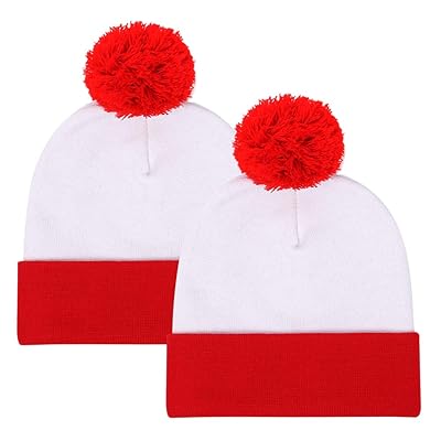 Red and white beanie hat clearance, White Ski Hat - Fur Pom Pom clearance