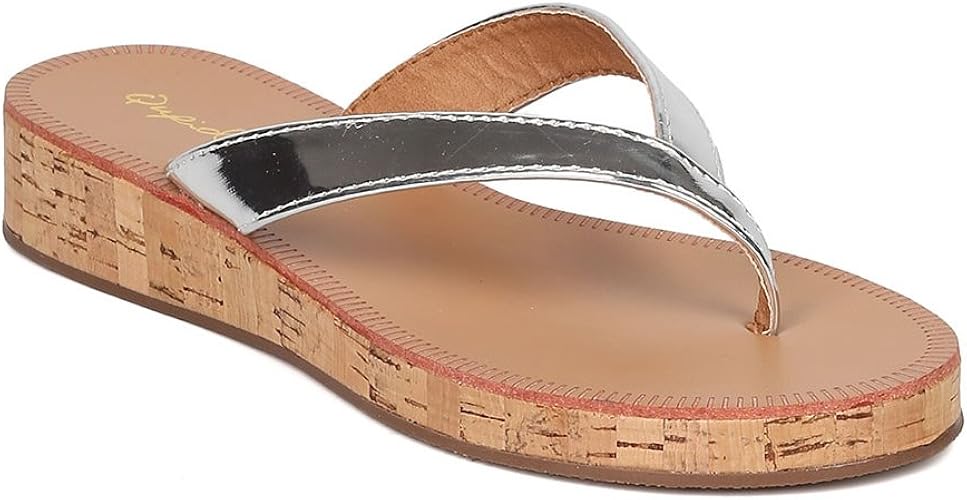 Low wedge thong sandals clearance, Qupid Women Metallic Leatherette Cork clearance