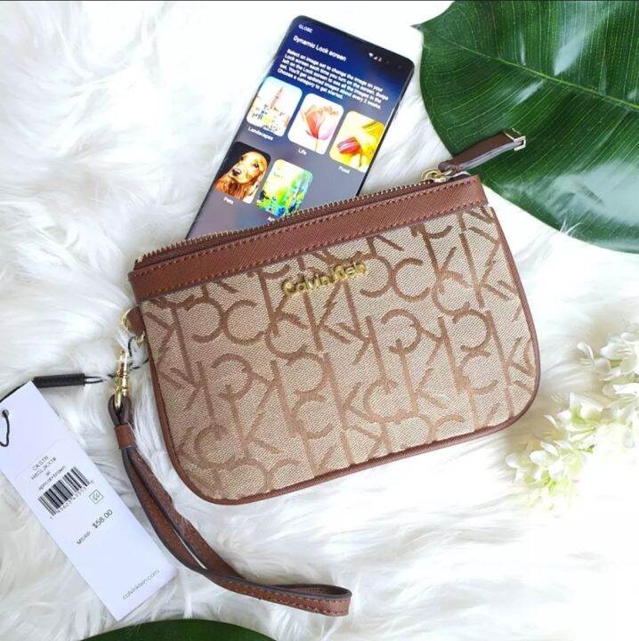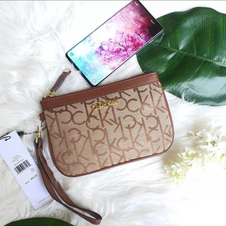 Calvin klein saffiano wristlet clearance, J2HL C.A.L.V.I.N K.L.E.I.N Brown Saffiano Leather and Apricot Canvas with Monogram Logo Large Zip Wristlet and Signature Logo Plaque - Women's Wristlet | Lazada PH clearance
