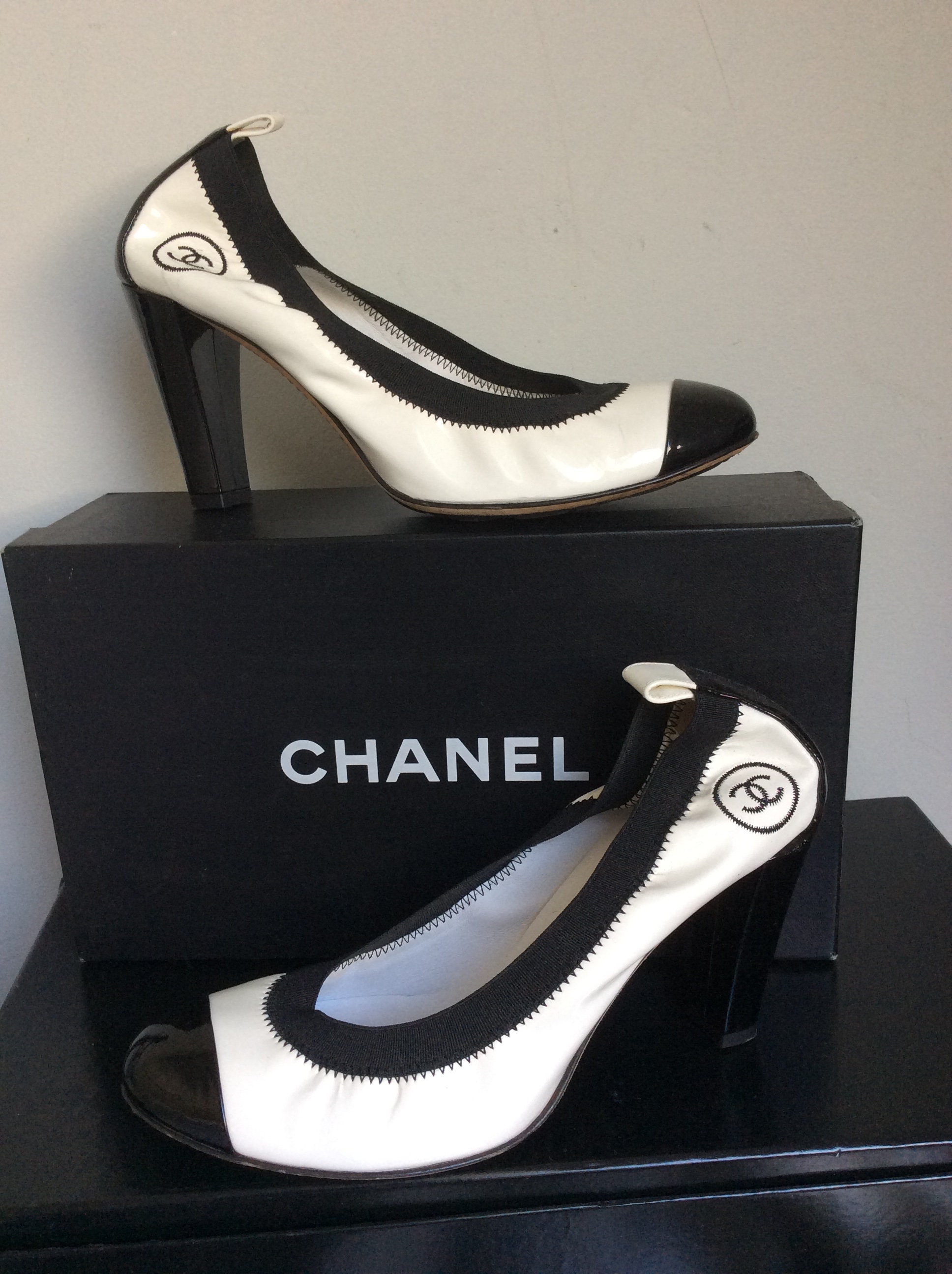 - Chanel shoes black and white pumps clearance
