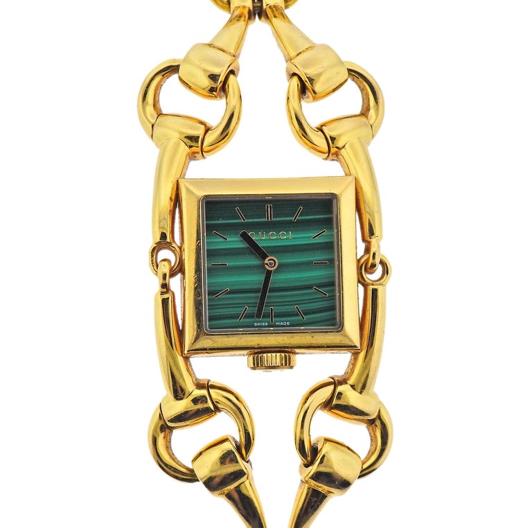 Gucci bit watch clearance, Gucci Horsebit Malachite Dial Gold Watch Bracelet at 1stDibs clearance