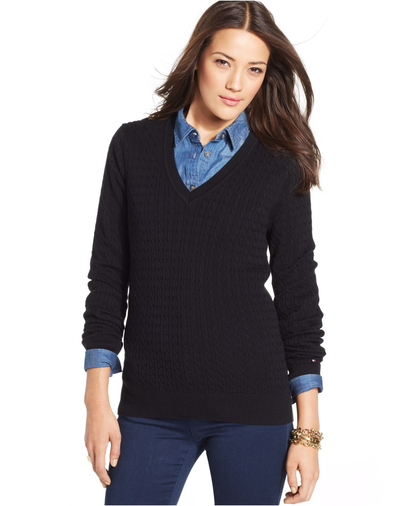 - Tommy hilfiger women's v neck sweater sale online