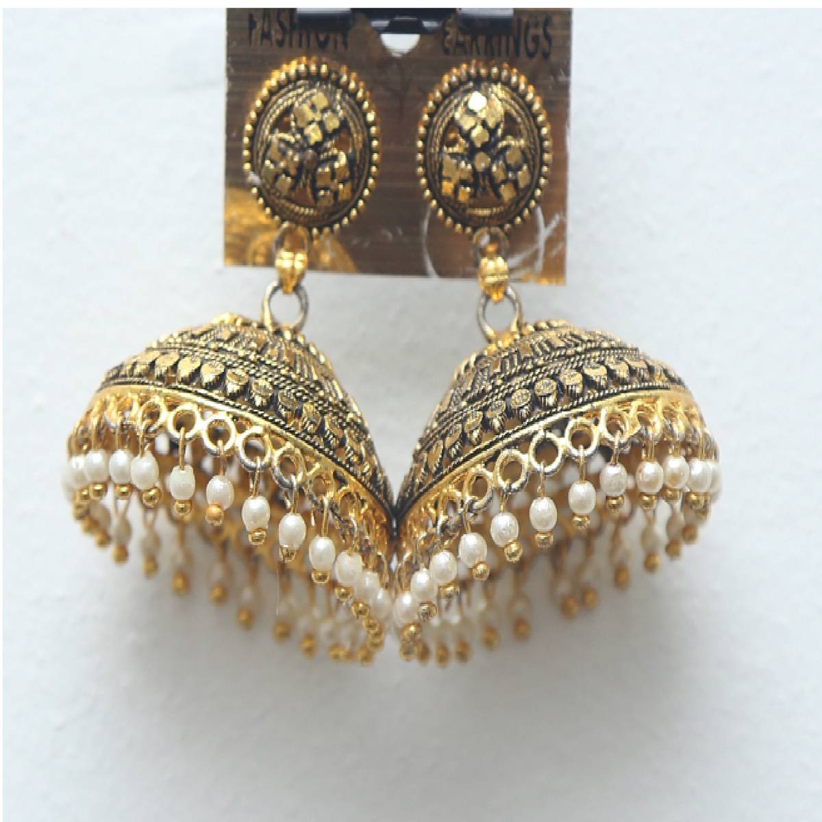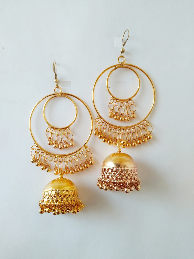 Golden color jhumka clearance, Antique Golden Color Metal Earring clearance