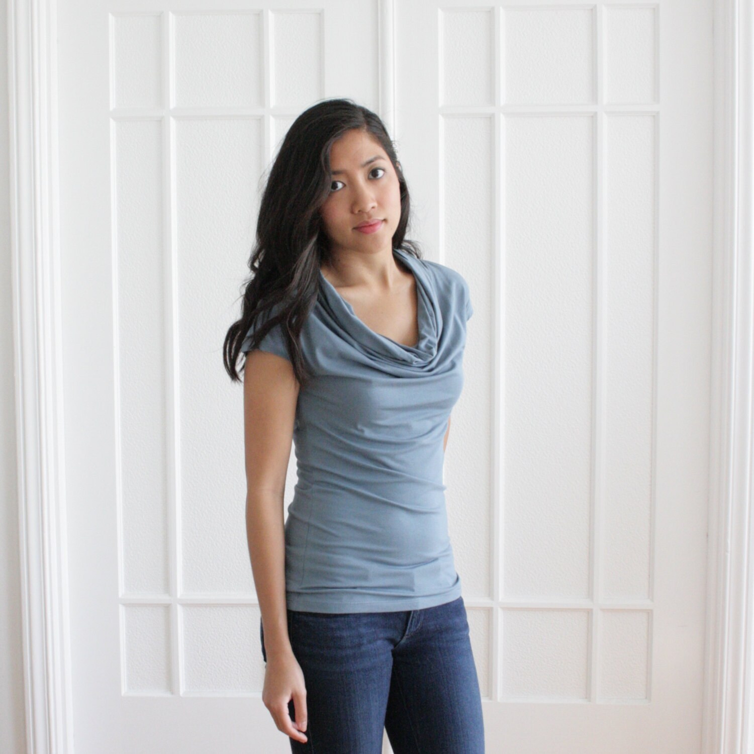 - Light blue cowl neck top clearance