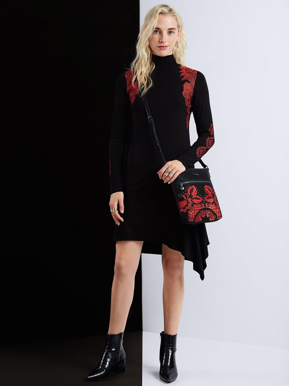 Asymmetrical clothing club desigual clearance, DESIGUAL Asymmetric Galactic Dress Sicilia Black Red clearance