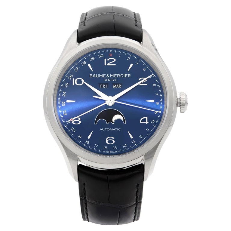 Baume et mercier moonphase clearance, Baume et Mercier Clifton Moonphase Day Date Steel Automatic Mens Watch MOA10057 For Sale at 1stDibs clearance