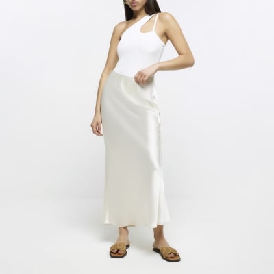 - Ivory satin maxi skirt sale online