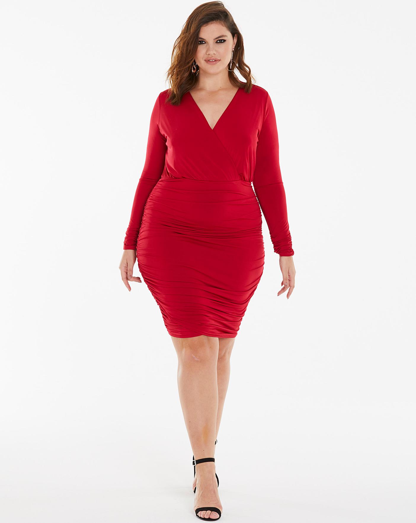 Simply be red dress clearance, Plunge Neck Ruched Side Bodycon Dress clearance