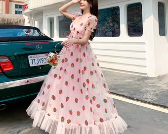 - Strawberry chiffon dress sale