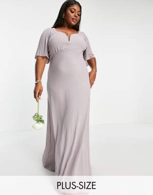 Grey flutter sleeve dress clearance, TFNC Plus bridesmaid sweetheart neck clearance