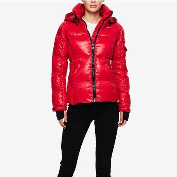 S13 red puffer jacket clearance, quilted down hooded puffer jacket clearance