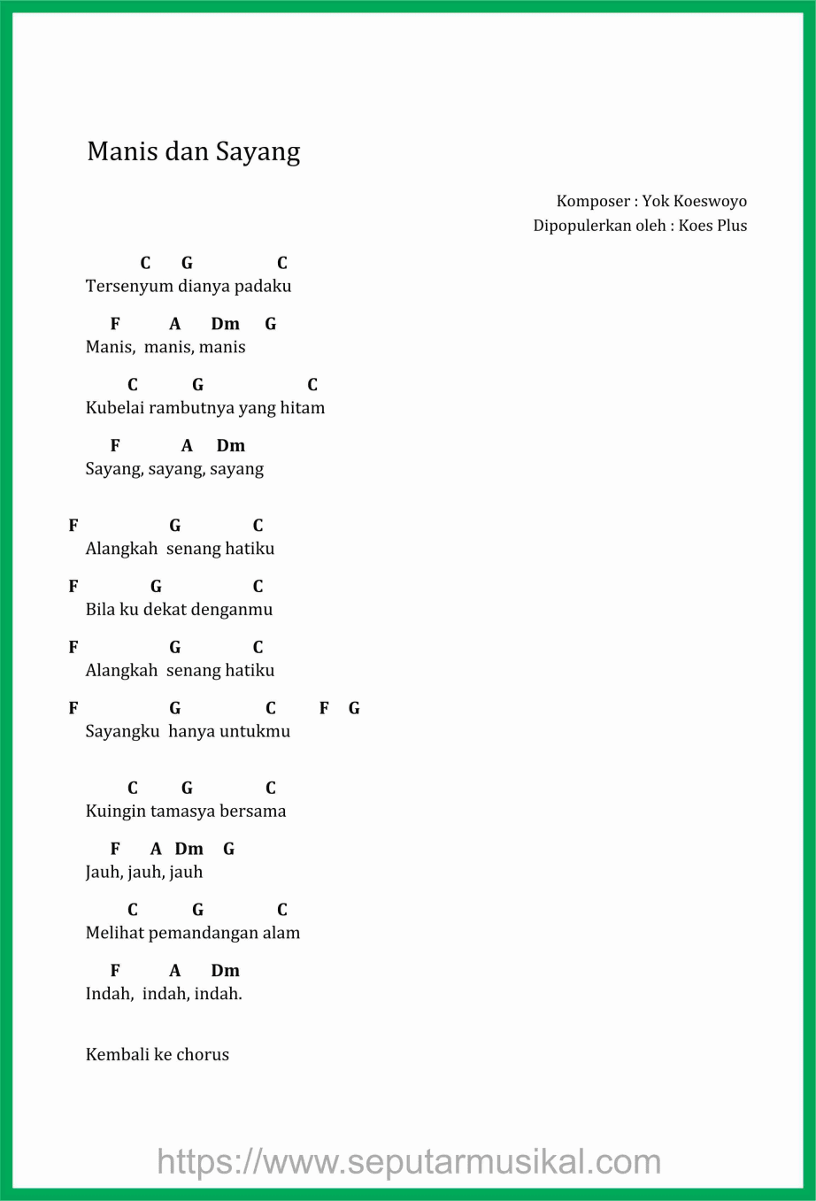 Manis dan sayang chord clearance
