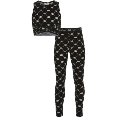 River island childrens leggings clearance, Girls black RI crop and leggings outfit clearance