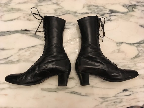 - Black leather granny lace up boots sale