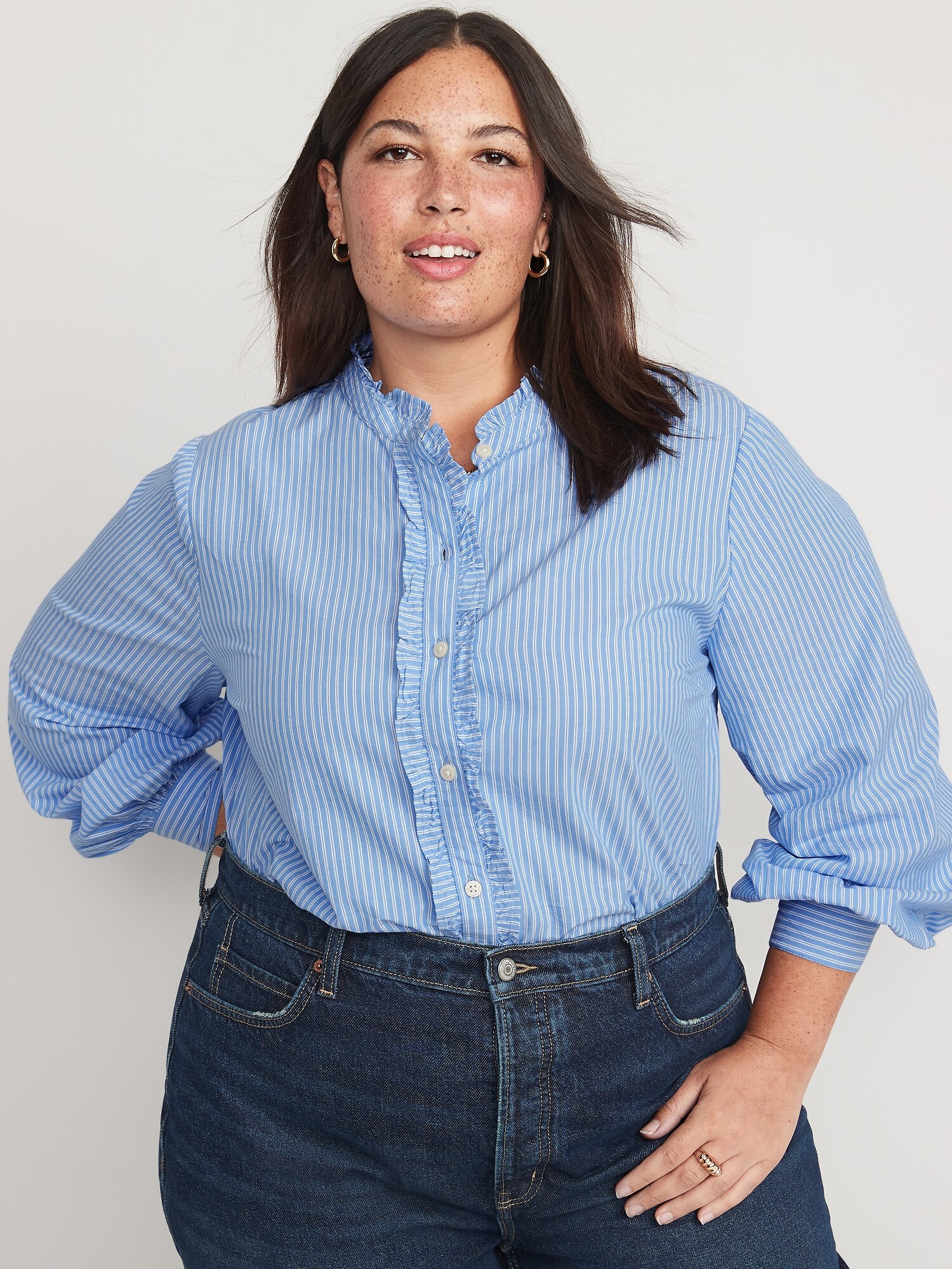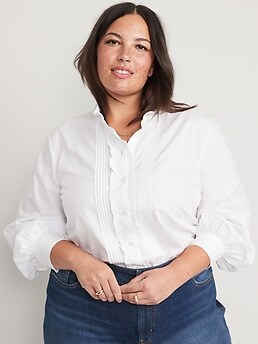 Old navy tuxedo shirt clearance, Ruffle-Trimmed Striped Collarless Tuxedo Shirt for Women | Old Navy clearance