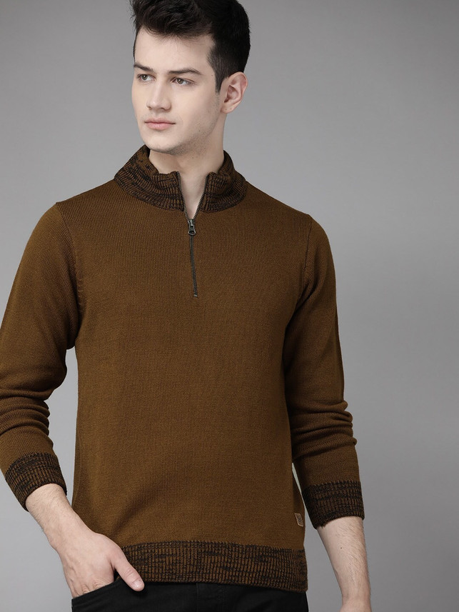 Roadster sweaters flipkart clearance, Roadster Solid Casual Men Brown Sweater clearance