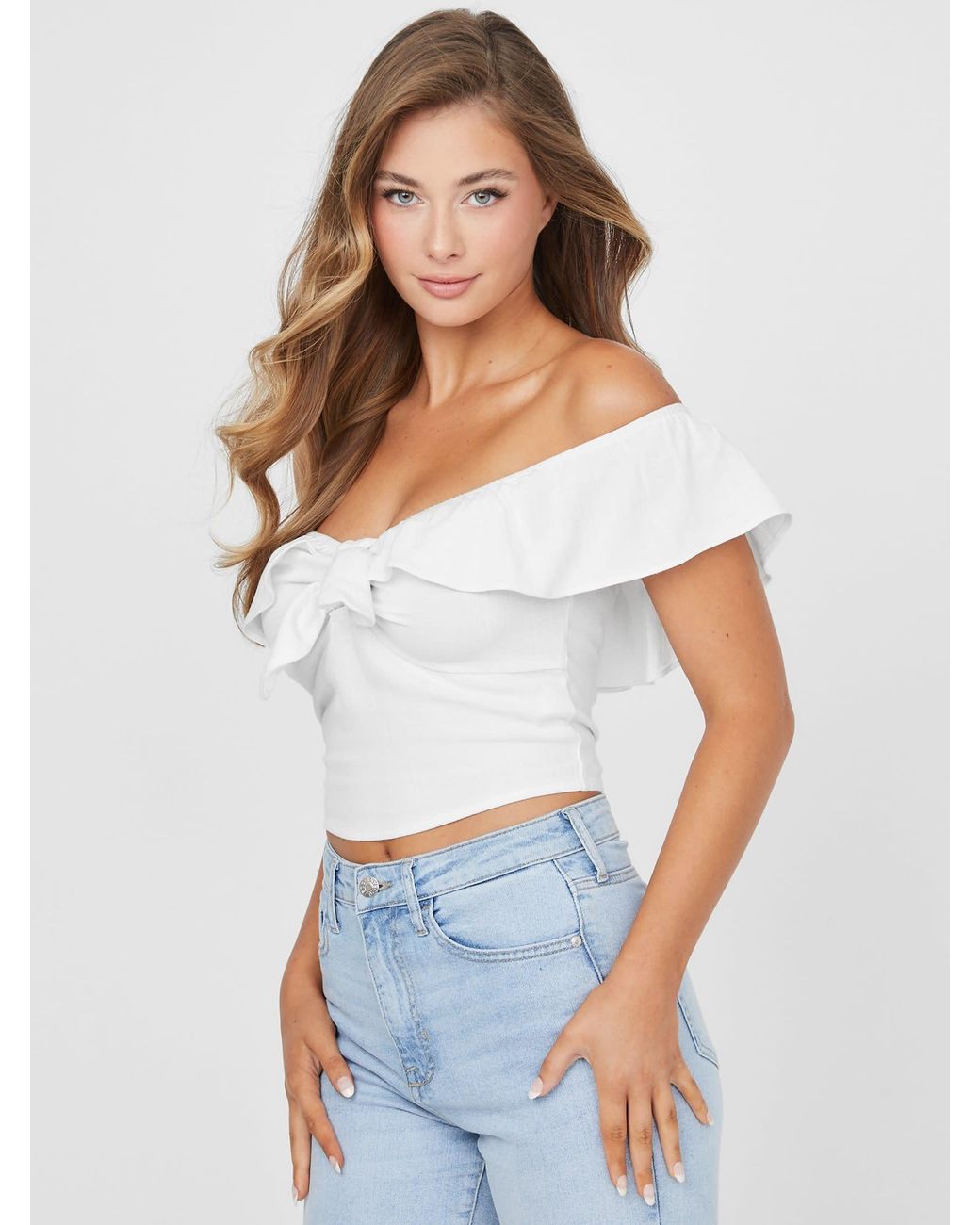 - Guess white off the shoulder top shop