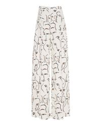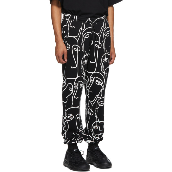 Black pants with white faces clearance, Abstract Face Wide Leg Trousers clearance