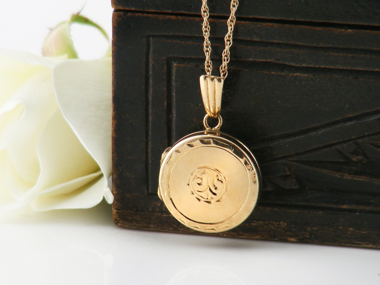 9ct gold chain and locket clearance, Solid 9ct Gold Petite Vintage Locket clearance
