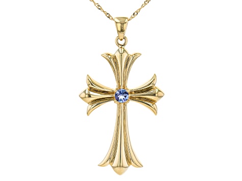 Jtv gold crosses clearance, Blue Tanzanite 10k Yellow Gold Cross clearance