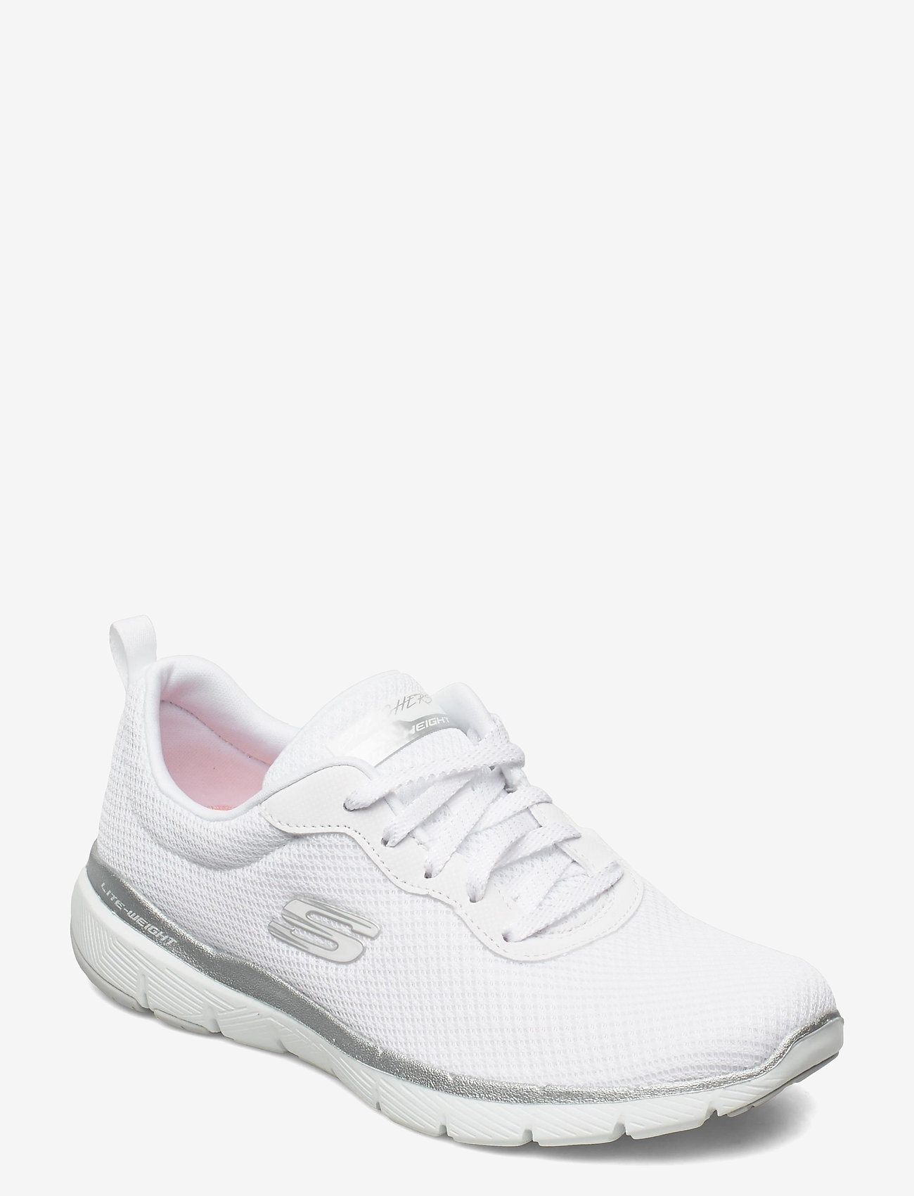Skechers white and silver sneakers clearance, Skechers Womens Flex Appeal 3.0 - First clearance