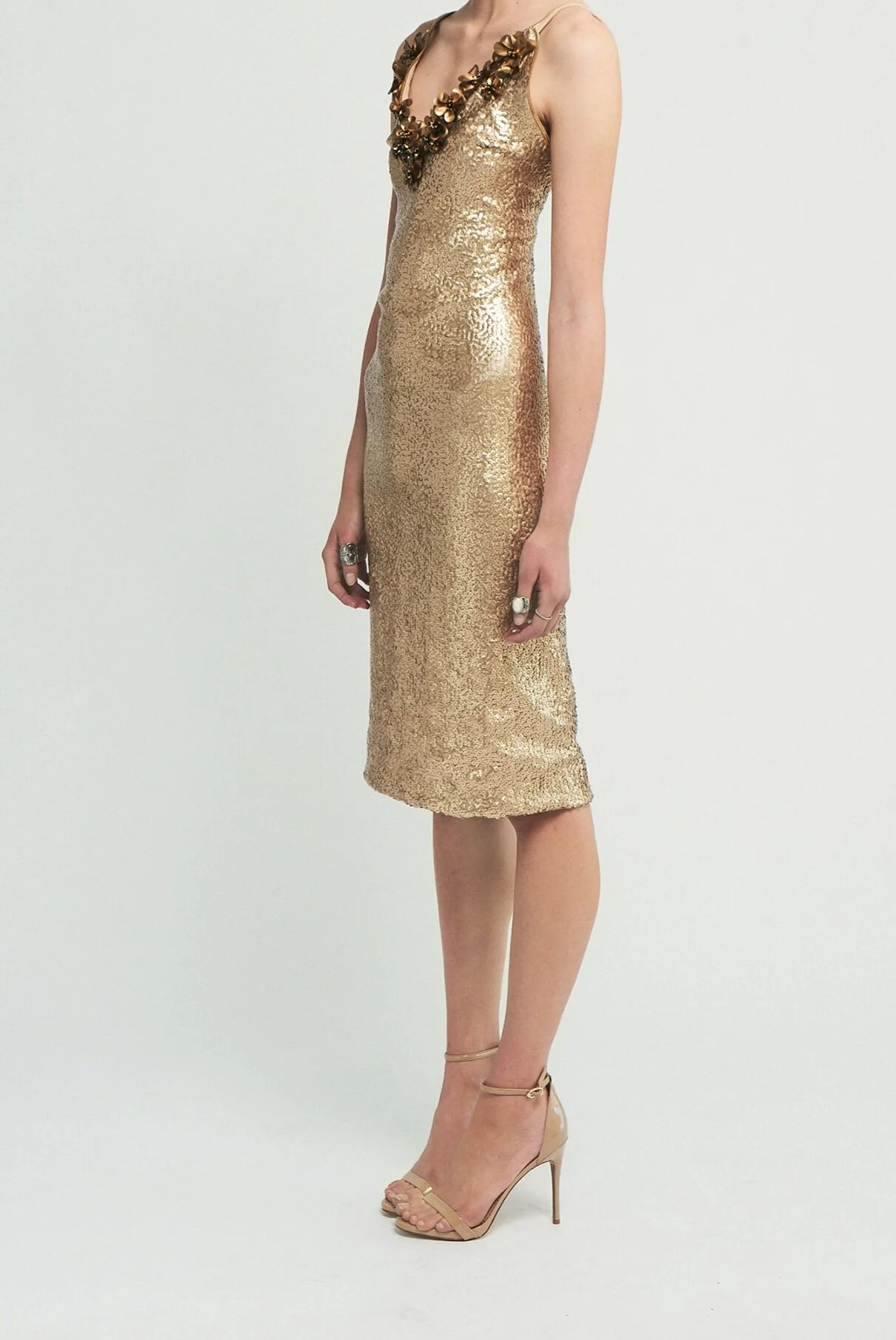 - Gold midi sequin dress