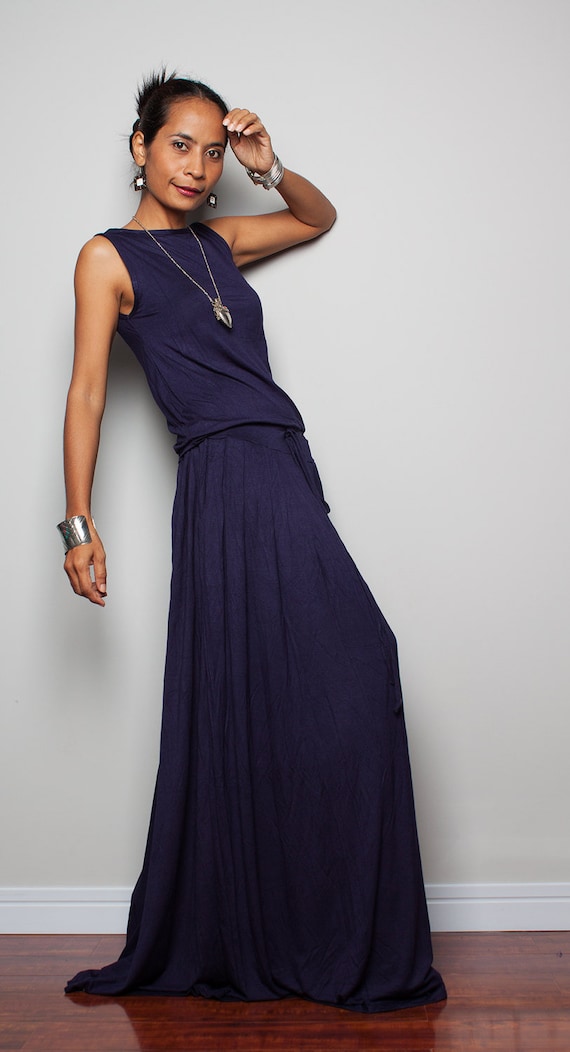 - Navy blue sleeveless maxi dress sale