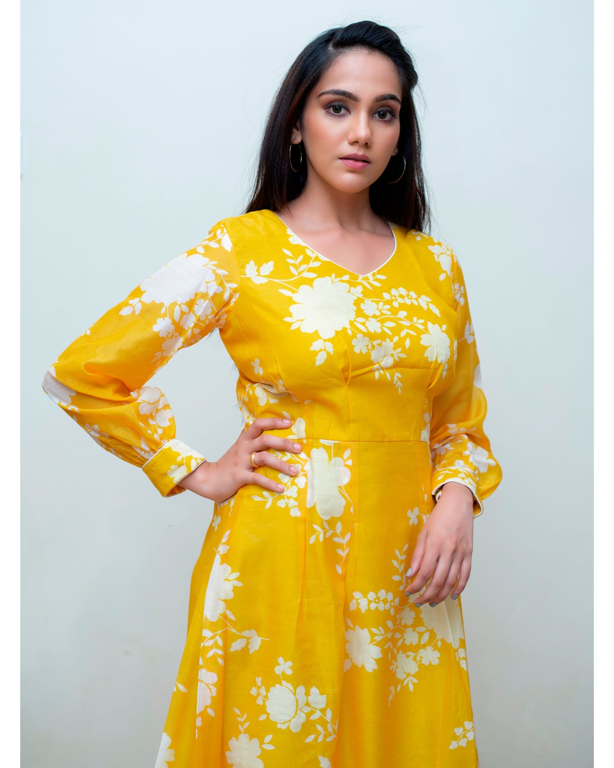 - Yellow balloon sleeve dress