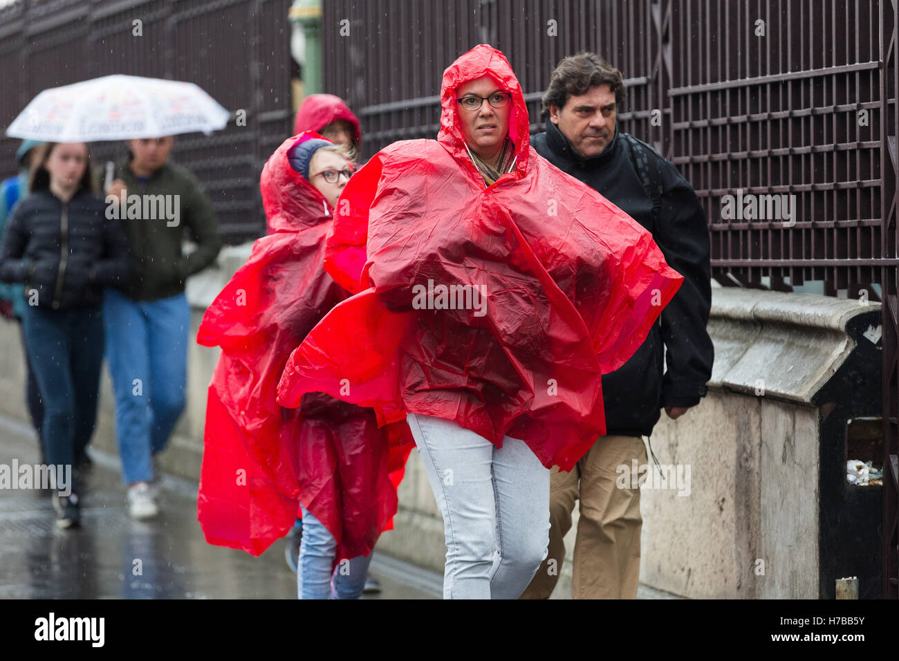 Wet weather wear clearance, London, UK. 04 November 2016. Tourists clearance