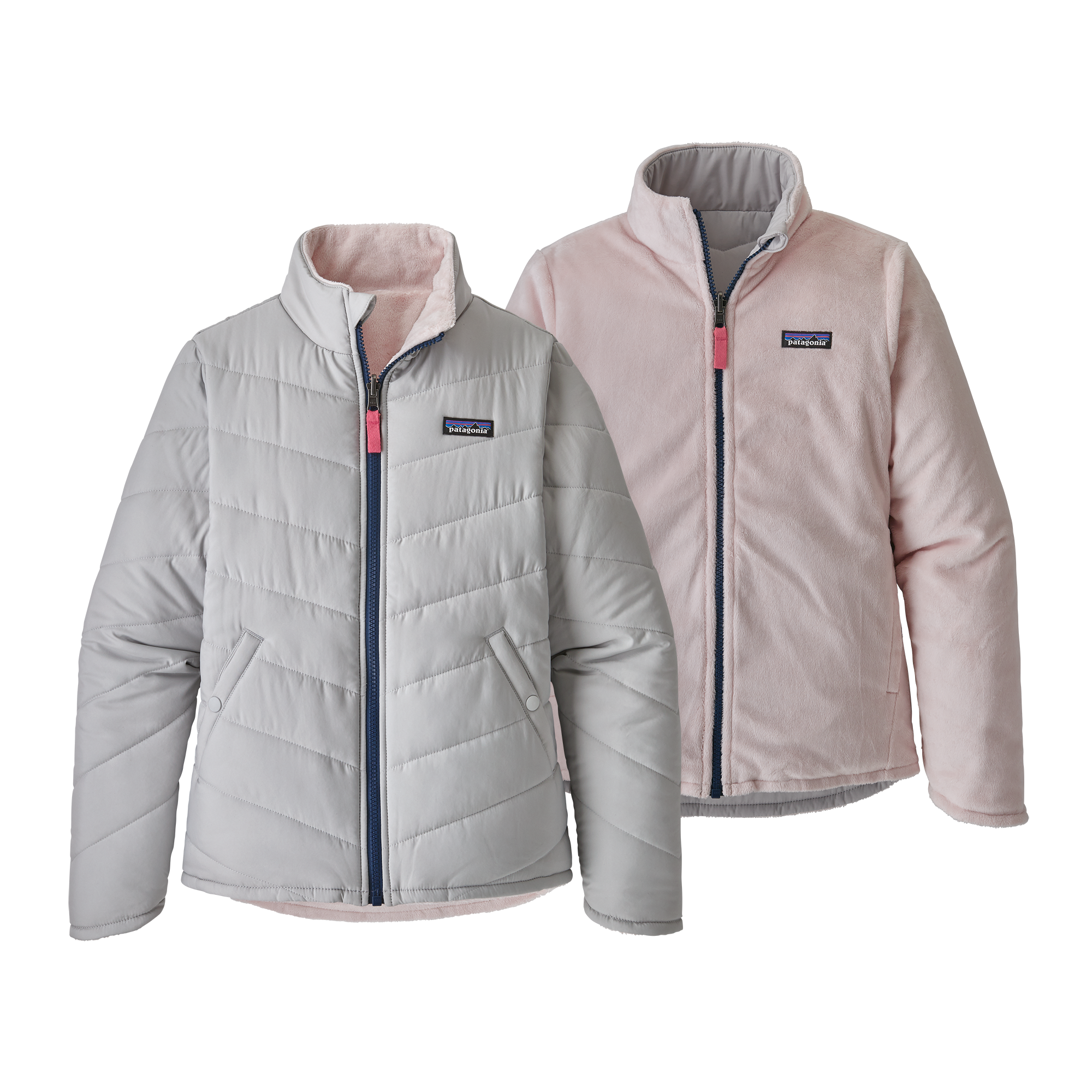 Patagonia reversible snow flower clearance, Patagonia Girls' Reversible Snow Flower Jacket - Smolder Blue | Krizia Martin clearance